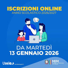 Si informano le famiglie che le domande per le iscrizioni alle sezioni della Scuola dell’infanzia, alla classe prima della Scuola primaria e secondaria di primo grado per l’anno scolastico 2026/2027 dovranno essere effettuate dalle ore 8:00 del 13 gennaio 2026 alle ore 20:00 del 14 febbraio 2026.